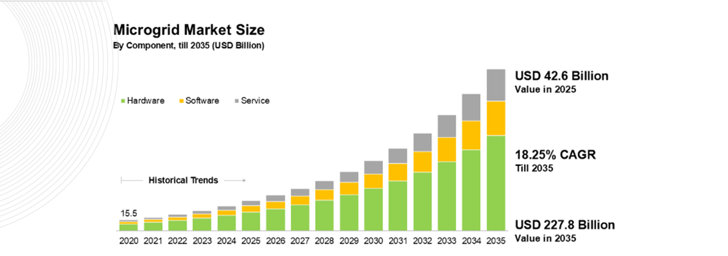 As industrial decarbonization accelerates globally, smart microgrids are becoming critical infrastructure for sustainable operations. According to Microgrid Market Report 2025-2035, the global microgrid market is projected to rise from USD 42.6 billion in 2025 and USD 227.8 billion by 2035, representing a CAGR of 18.25% during the forecast period. Yet key challenges persist: