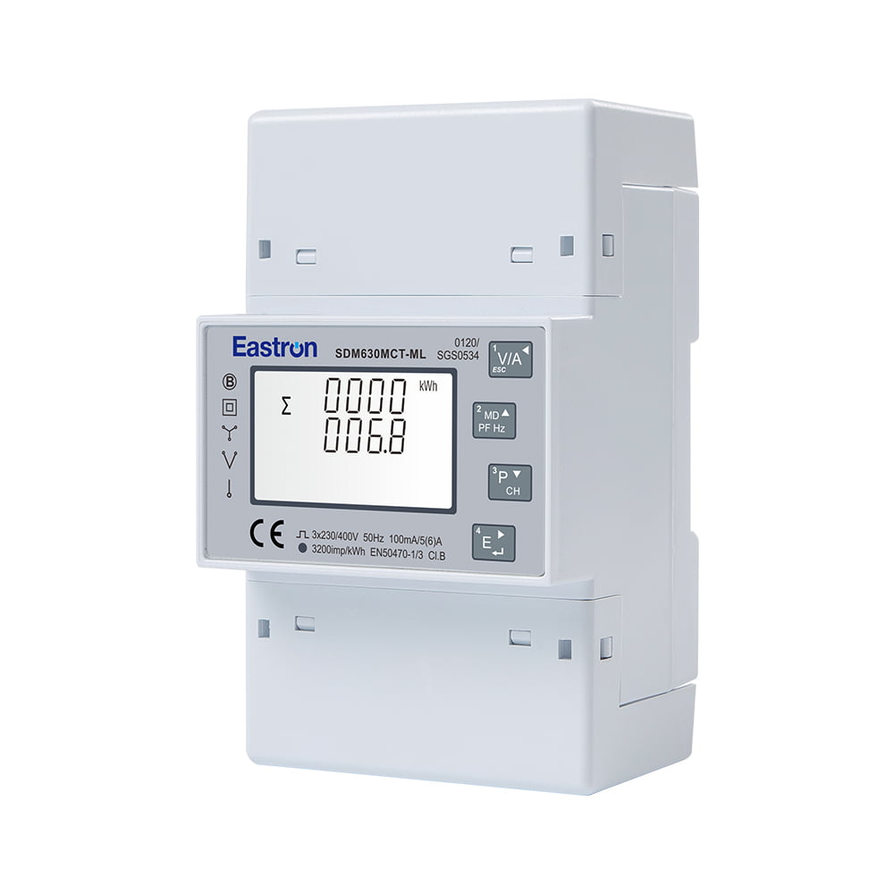 The SDM630MCT-ML is Quad Load RS485 Modbus Three Phase Multi-function Energy Meter for Easy Click System. The meter can work with 1p2w, 1p3w, 3p3w and 3p4w electricity grid, and it provides all important electrical parameters: voltage, current, power, PF, THD, frequency, demand, energy, etc.