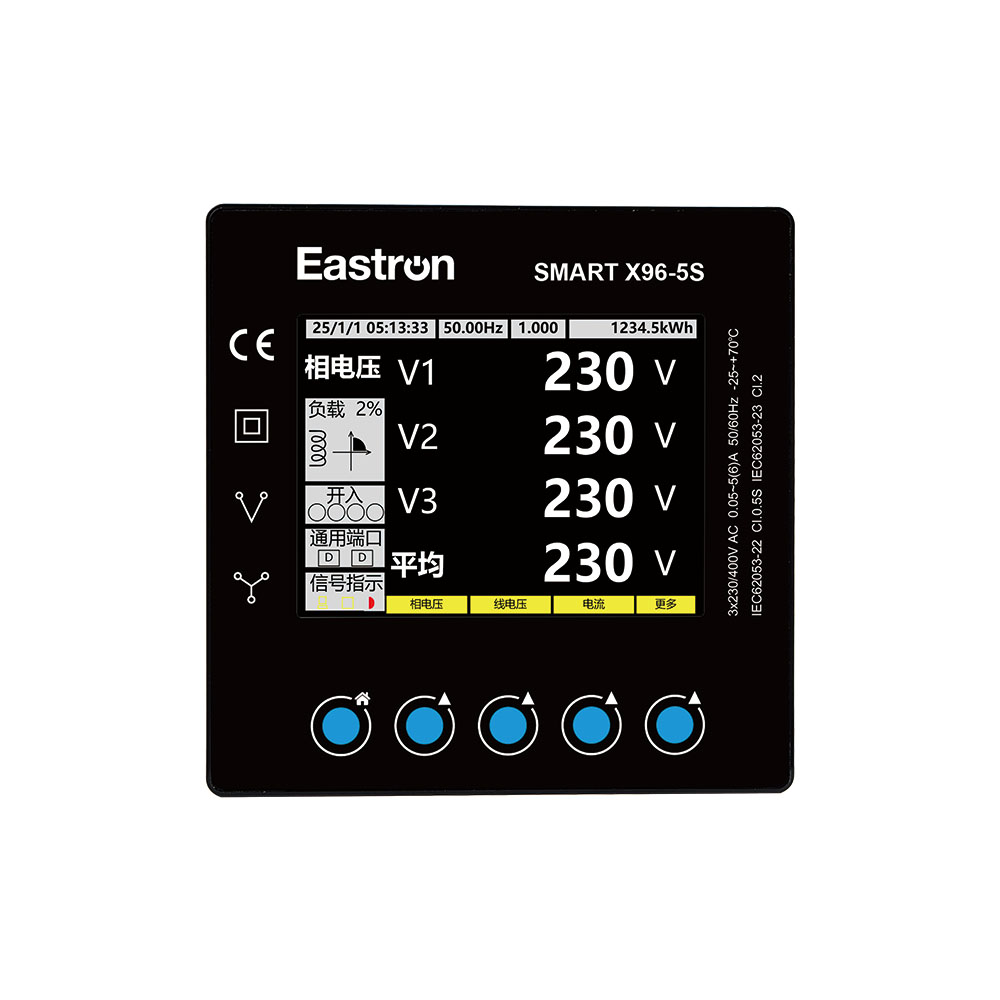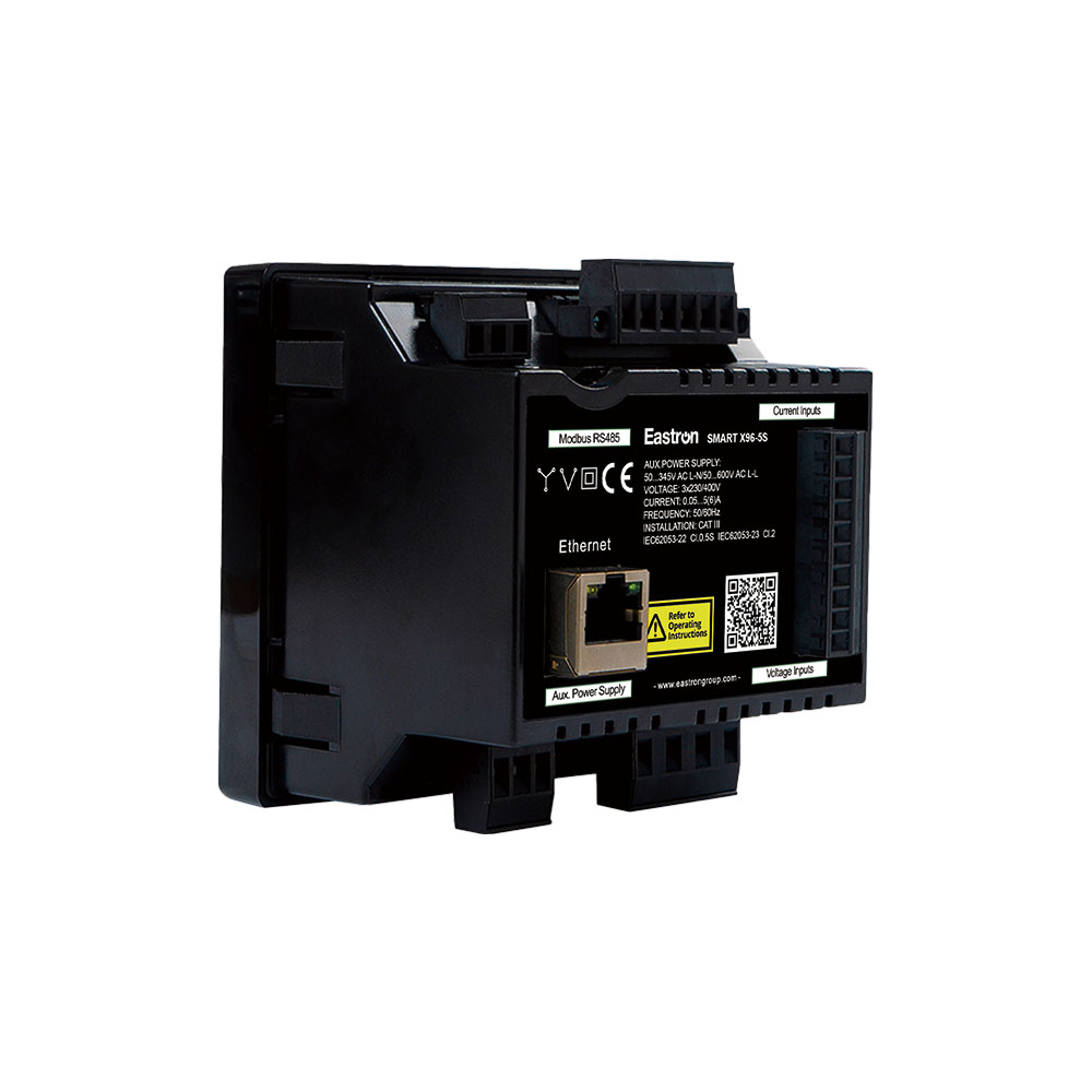 Eastron Smart X96-5S is a new generation panel mounted multi-function power analyzer, serving as a digital monitoring terminal and an intelligent device integrating measurement, monitoring, and communication. It utilizes modern computer and digital signal processing technology, enabling it to replace various transmitters, meters, relays, and other components. The multi-function power analyzer features an RS-485 interface and supports the standard MODBUS-RTU communication protocol, allowing seamless integration into any power monitoring system.