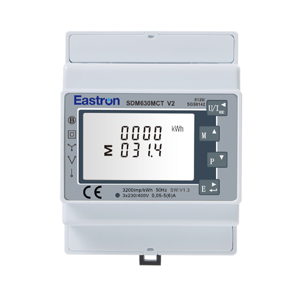 The SDM630MCT V2 is MID Approved CT Type Din Rail Three Phase Multi-function Solar PV /Zero Export Meter for PV metering. Suitable for monitoring energy consumption and many other electrical parameters. Its bi-directional measurement function made it a good choice for Solar PV and the Zero Export Systems. The unit requires auxiliary power supply (AC or DC) to power the meter and it can work with 1A/5A input CTs. Build-in interface provides pulse and RS485 Modbus RTU outputs.